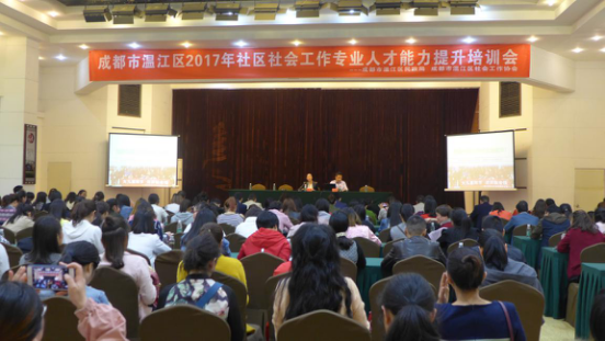 4月13日,新澳彩官网 副院长邓湘树副教授应成都市温江区民政局邀请为温江区社区社会工作专业人才授课。各镇(街)分管领导、业务科室负责人、村(社区)持证社工共计200余人参加了本次培训。邓湘树围绕“社区本土社工人才如何参与社区社会工作”,结合今年来温江区实施“三社互动”项目的实践经验,为全区村(社区)持证社工分享了“社区工作七法”。本次授课,对于进一步促进温江区本土社工人才队伍参与社区服务,增强本土社工人才队伍专业服务技能,充分发挥本土社工在基层服务中的专业性作用具有积极的作用。