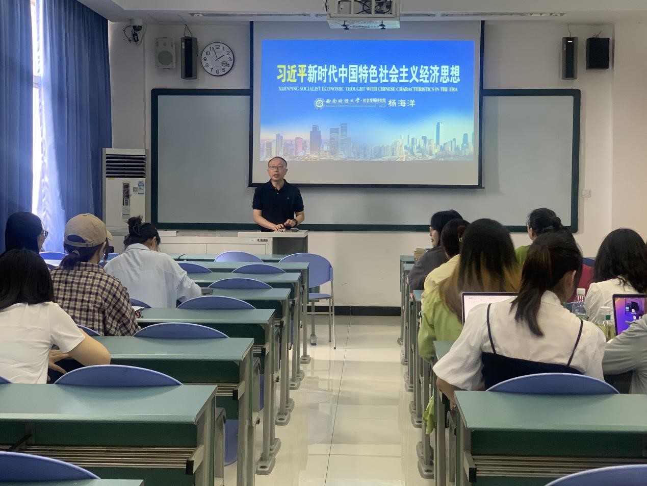 杨海洋院长在光华校区明德楼515教室为社会工作专业的学生讲授了一堂以“习近平新时代中国特色社会主义经济思想”为主题的思想政治理论(专题)课。