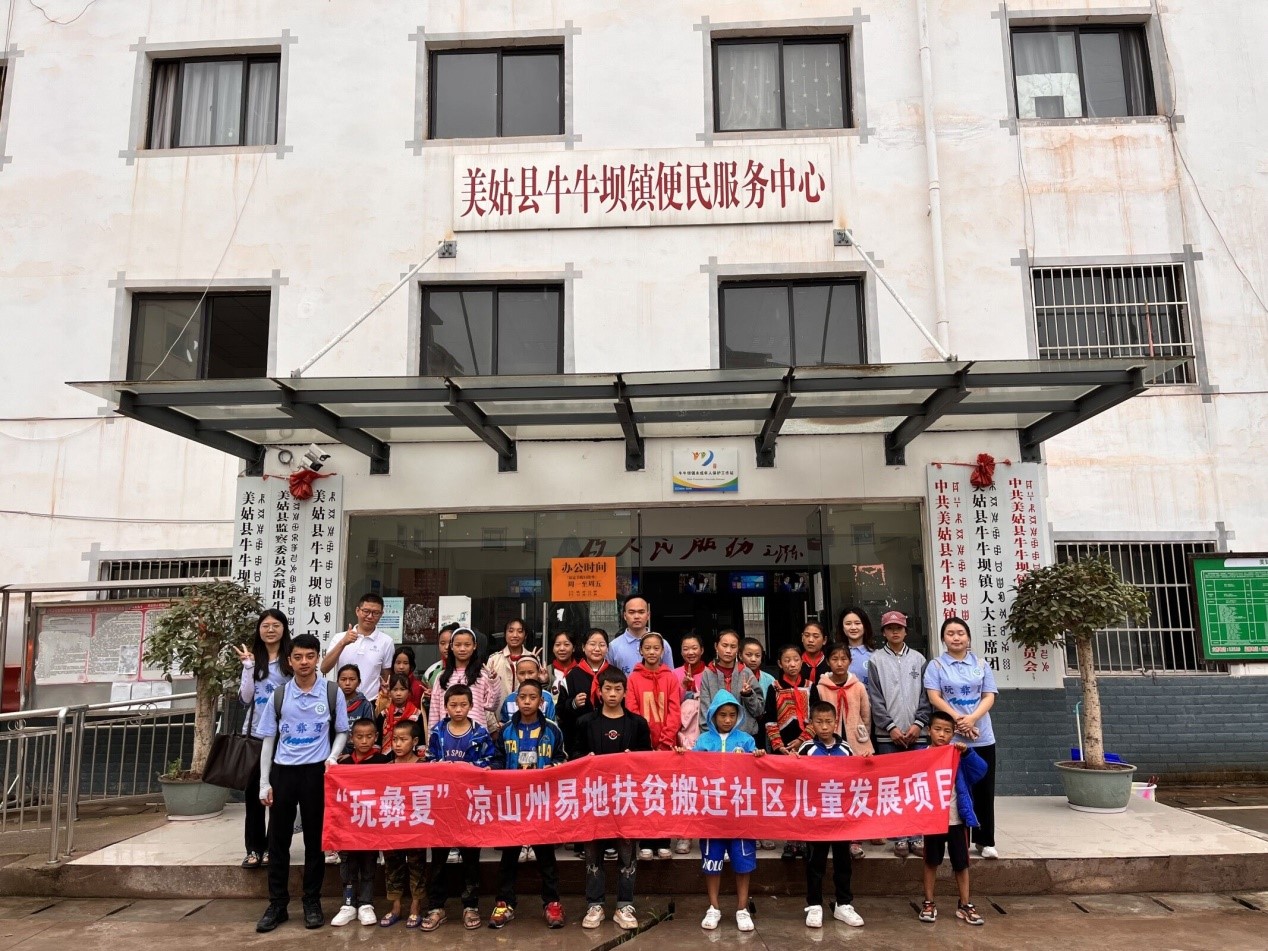 在过往服务的基础上,创新性开展了“玩彝夏”大型易地扶贫搬迁社区儿童发展项目。在喜德县最大的易地扶贫搬迁安置社区—彝欣社区,曲比尔拉(化名)小朋友与新伙伴围坐在一起,在新澳彩官网