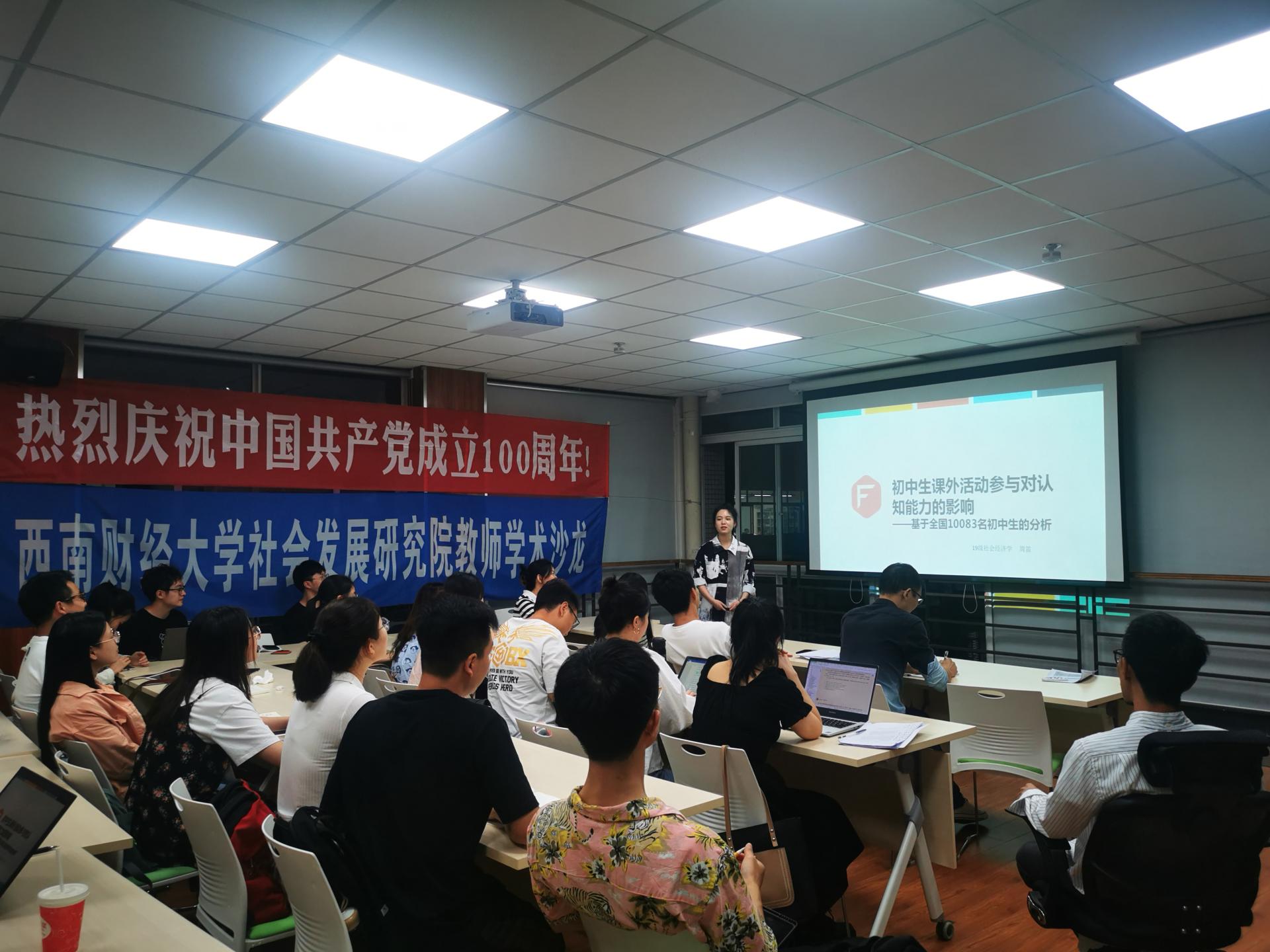 下半场由2019级社会经济学专业刘锐同学主持,两名同学做论文汇报。首先,周笛就《初中生课外活动参与对认知能力的影响—基于全国10083名初中生的分析》论文进行分享。她利用2014—2015学年“中国教育追踪调查(CEPS)10083名初中生的数据,探讨不同类型课外活动参与对初中生认知能力的影响,并进一步分析影响程度的性别差异和家庭经济地位差异。分享结束后,罗牧原老师就论文写作应如何呼应文章主题发表观点,强调论文写作思维的重要性。同时,蒋和超老师也针对文章的变量选取以及变量间的关系提出了自己的看法。