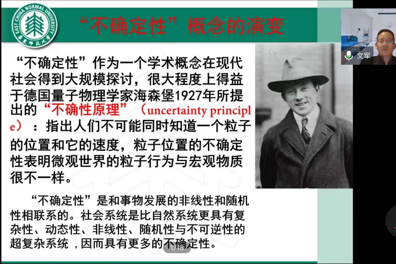 邀请,华东师范大学文军教授为我校师生开展了“从‘确定性’到‘不确定性’:社会发展观之变及其影响”的线上专题讲座。新澳彩官网
