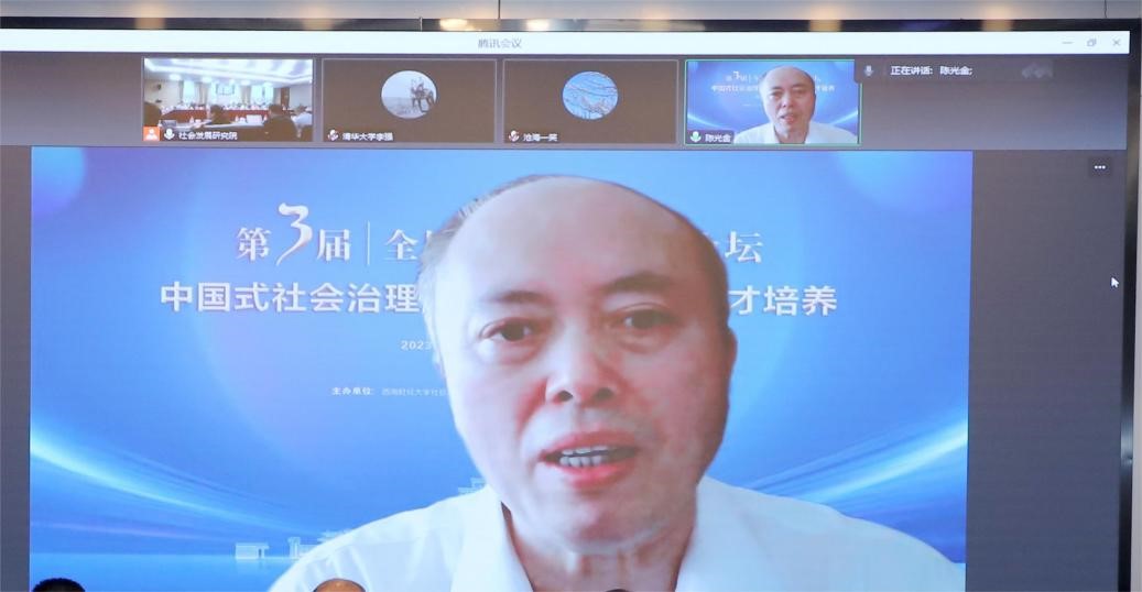 中国社会学学会会长、中国社会科学院社会与民族学院院长陈光金教授在致辞中强调,社会学从诞生之日起就是为了促进社会治理、推进社会治理现代化。党和国家对社会学高度重视,如何培养一批又一批的社会学人才是我们的使命,如何建立一个高质量的教材体系、课程体系、教学体系值得我们思考。陈光金教授还希望在培养学生时要注意打好基础、突出重点、紧跟前沿、办出自己的特色、办面向世界的社会学。