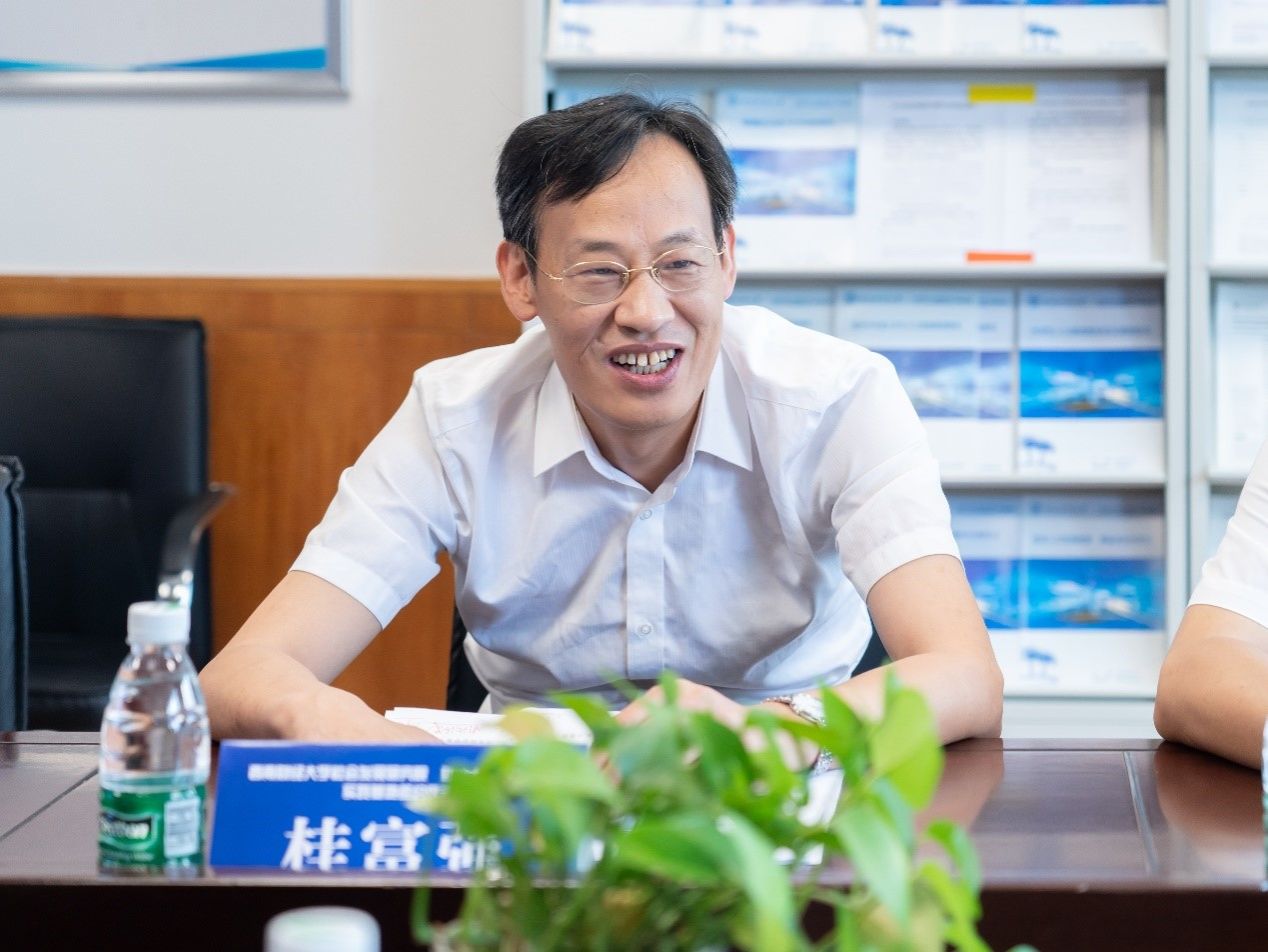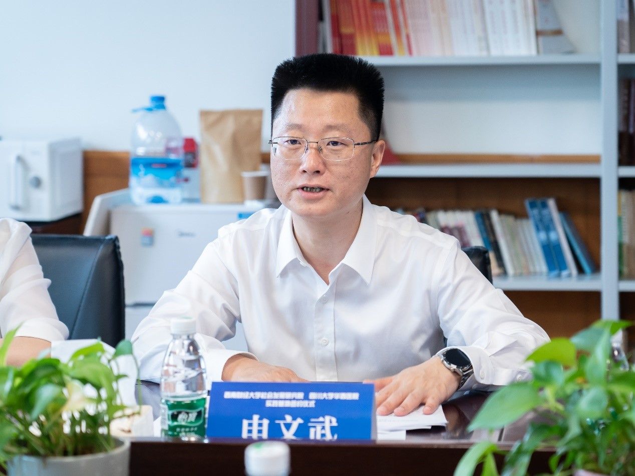 桂富强首先对申文武一行表示热烈欢迎,介绍了学校历史沿革和基本情况。他表示,要充分发挥西南财经大学的专业优势,与四川大学华西医院一起促进老年学、社会学、医学、心理学、健康学等方向的交叉融合、理论创新。要积极组织学校师生与四川大学华西医院的专家教授形成跨专业的合作团队,共同服务群众切实需要。要以人才培养为核心,双方协同构建医务社工人才培养体系。希望在双方的共同努力下,以服务健康中国建设、积极老龄化国家战略为己任,以服务决策咨询、理论研究和人才培养为重要任务,早日建成集服务决策、学术创新、培养人才为一体的高水平实践基地。