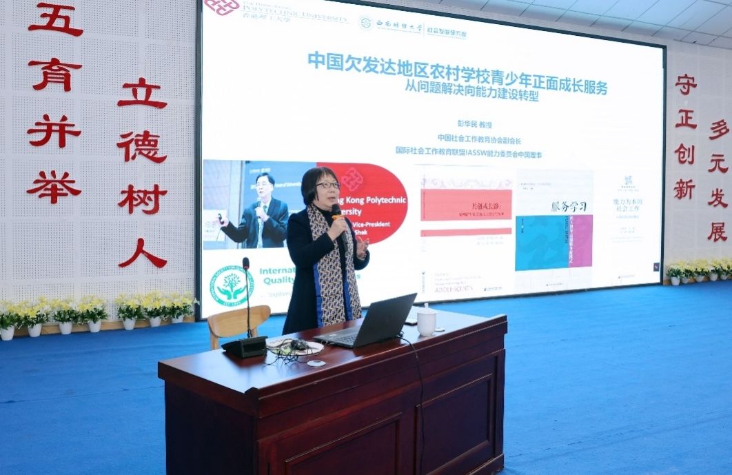 在全场嘉宾的共同期待下,《共创成长路:农村青少年正面成长理论及实务》新书揭幕仪式正式举行,标志着这一凝聚了众多专家学者心血的力作正式面世。随后,石丹理教授发表了题为“青少年正面成长的概念、计划及研究”的主旨演讲,深入浅出地阐述了青少年正面成长的核心要义与实践路径。彭华民教授则围绕“中国欠发达地区农村青少年服务:从问题视角向能力建设转型”的主题,分享了其在该领域的独到见解与研究成果。两位教授的精彩演讲不仅揭示了新书背后的深厚底蕴与现实价值,更为与会者带来了一场智慧与灵感的碰撞,激发了大家对于青少年成长问题的深刻思考。